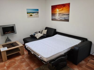 Die Couch im Wohnzimmer kann in 30 sek. in ein vollwertiges Bett verwandelt werden, mit Matratze und Unterbau. Somit ergibt sich die Möglichkeit im Haus Seestern max. 6 Personen unterzubringen. Bei es werden dann zwei Doppelbetten belegt und ein Doppelstock Bett. Bei Belegung mit 6 Personen werden wir Ihnen noch ein Stuhl mit reinstellen. Für 6 Erwachsene ist das Haus aber eher etwas zu klein mit Kindern und Jugendlichen ist das OK.